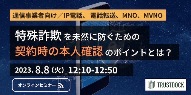 TRUSTDOCK 、「通信事業者向け|特殊詐欺を未然に防ぐための契約時の本人確認のポイントとは?」ウェビナーを2023年8月8日に開催