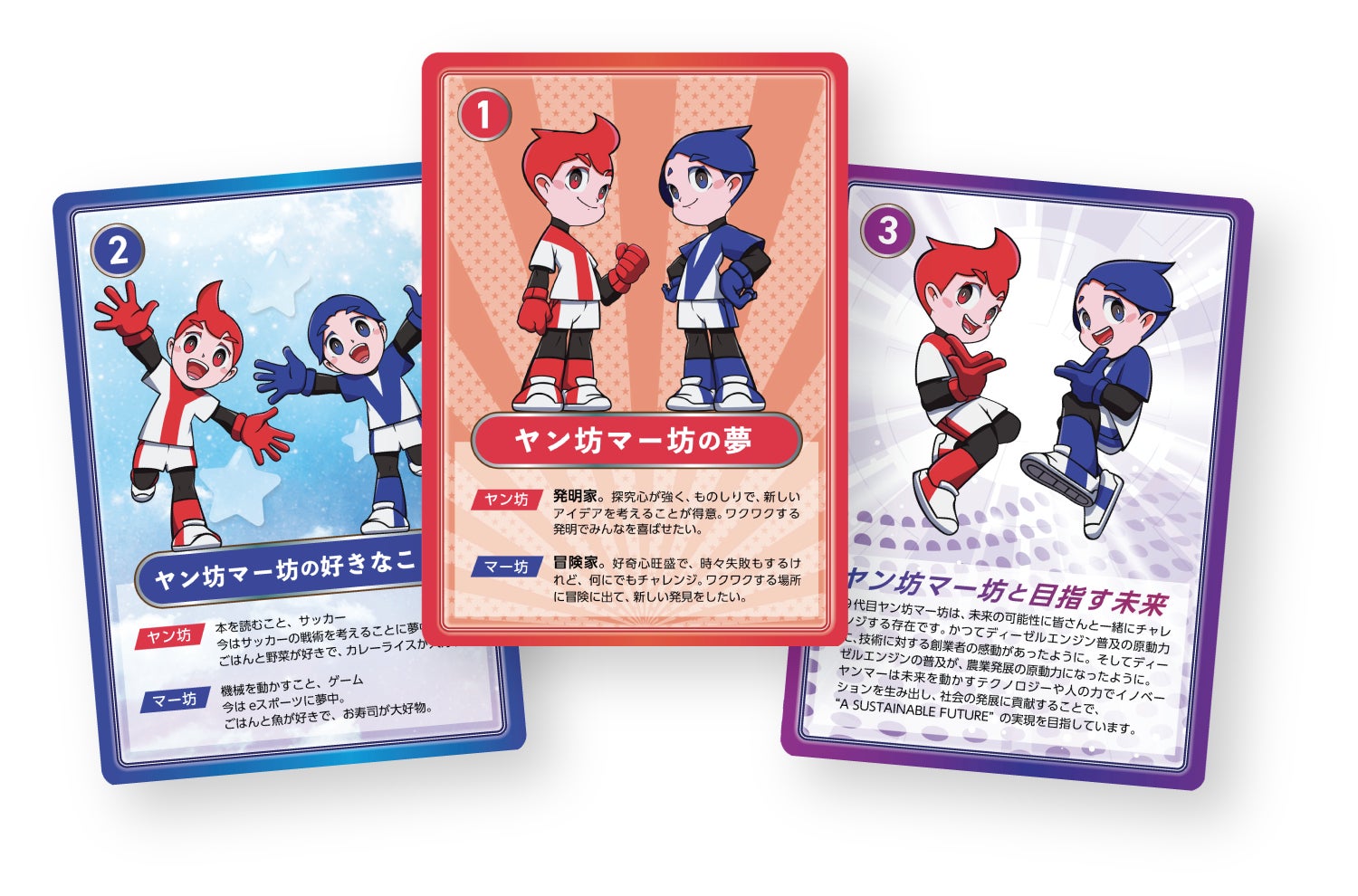 1.ヤン坊マー坊カードラリーに参加、「YANMAR TOKYO」地下1階から2階を巡り、3種のトレーディングカードを集める