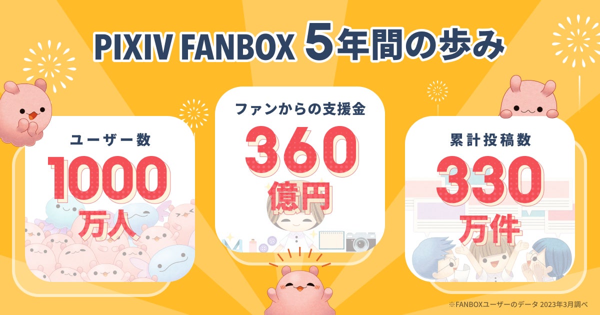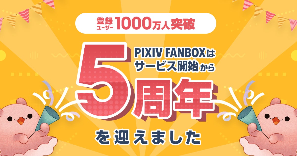 5周年を迎えるクリエイター支援サービス「pixivFANBOX」が、登録ユーザー1000万人、累計還元額300億円など、5年間を振り返るデータを公開。