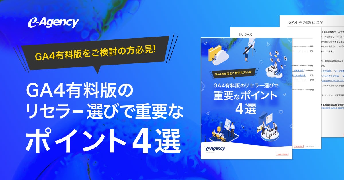 GA4有料版をご検討の方必見!GA4有料版のリセラー選びで重要なポイント4選資料を公開|株式会社イー・エージェンシー