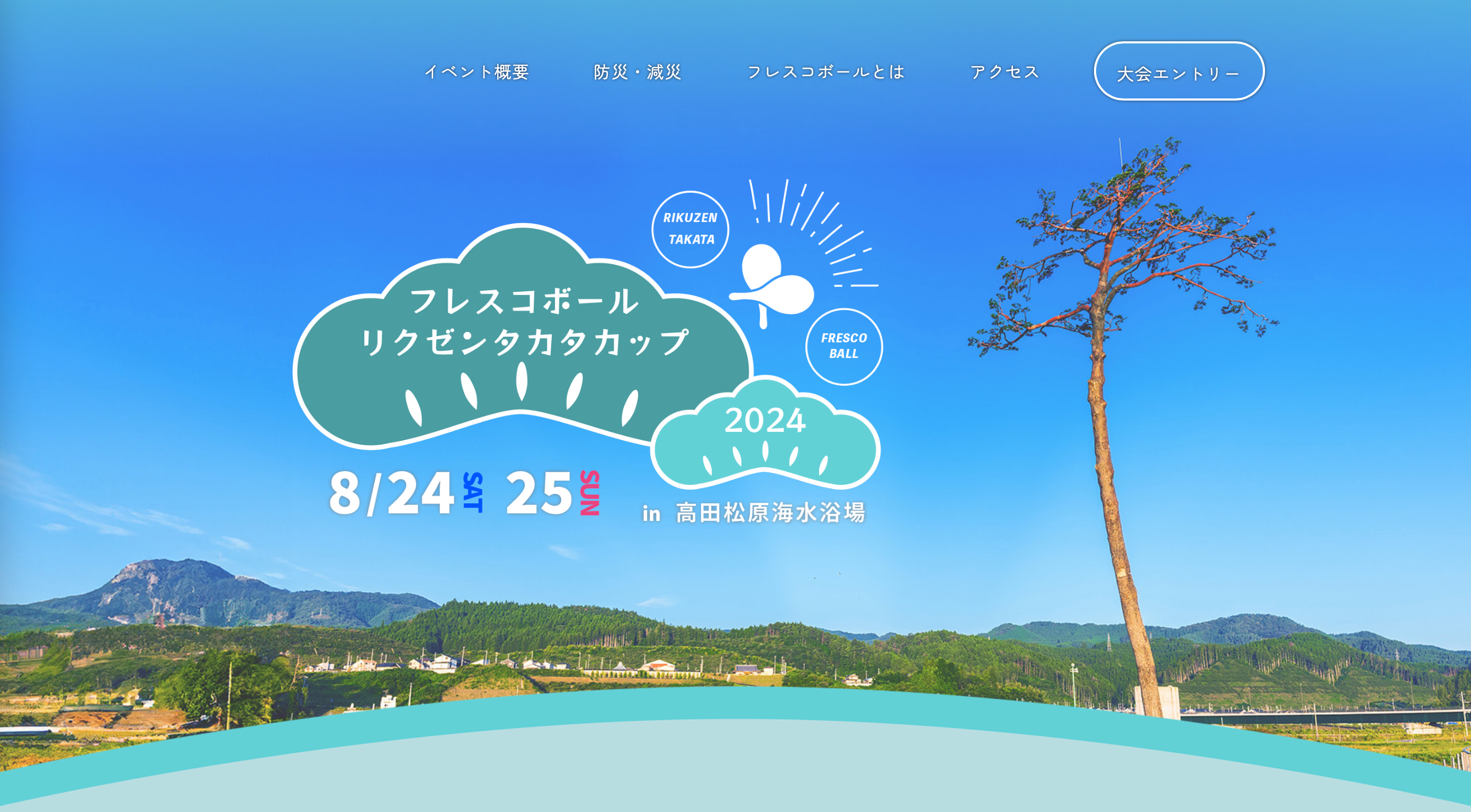 日本フレスコボール協会(JFBA)、8月24日-25日開催『フレスコボールリクゼンタカタカップ2024』特設HPを公開。コンセプトは「つなげ、ラリー。つなげ、防災・減災」。特別ラケットセールも実施中。