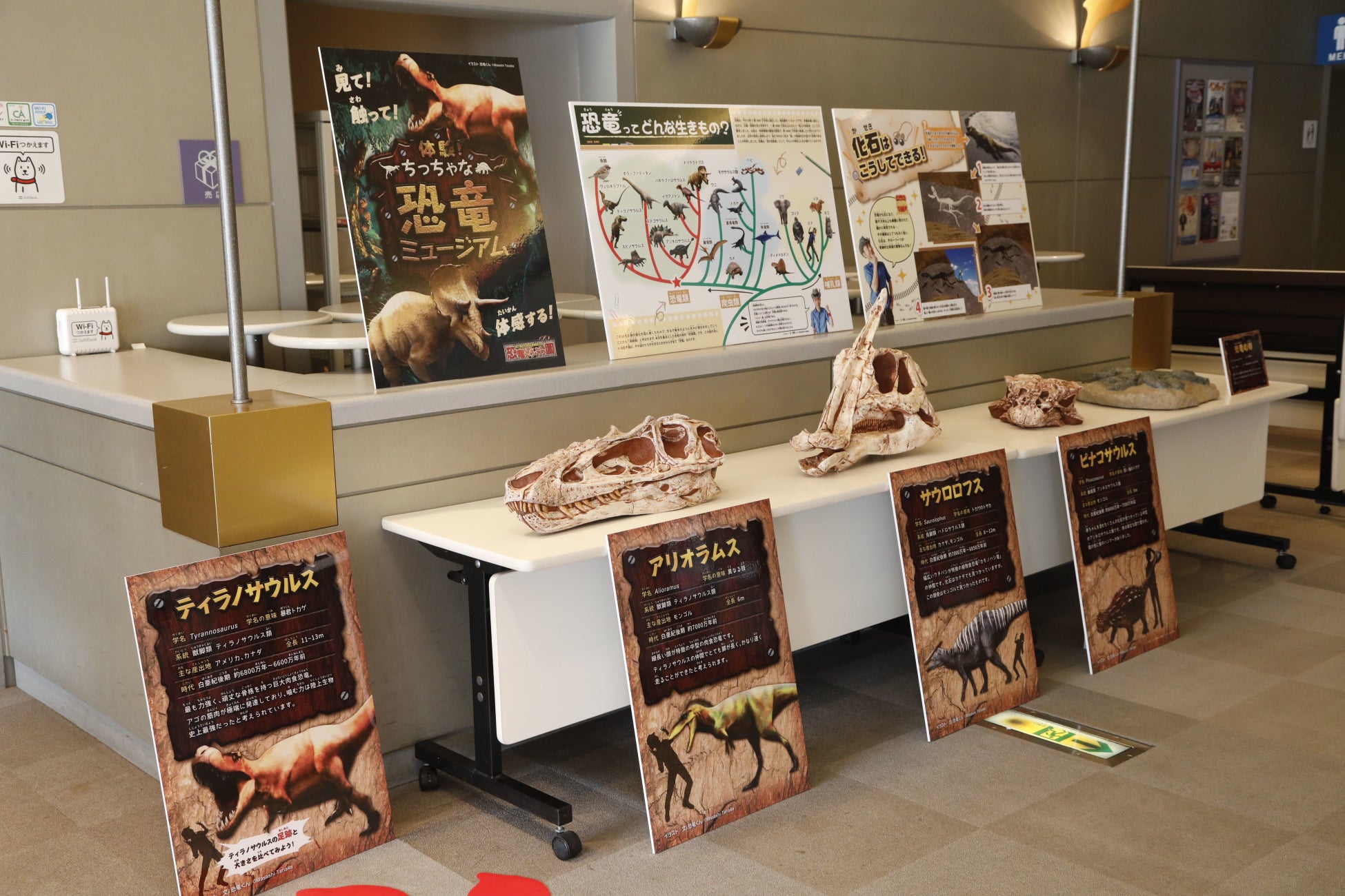 「恐竜パーク」の見どころはショー本編だけではありません。ロビーには、恐竜の化石を間近で見ることが出来るミニ恐竜展や、会場限定のARフォトスポット、オリジナルグッズコーナーも展開。ロビー内ではもちろん、上演中も写真撮影可能です。