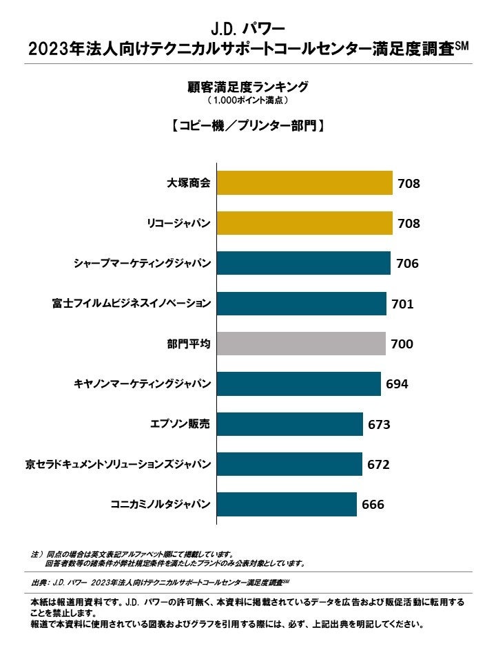 全製品部門で満足度が向上、続く満足度向上トレンド。大塚商会が全4部門で総合満足度第1位、コピー機/プリンター部門ではリコージャパンが同点で第1位