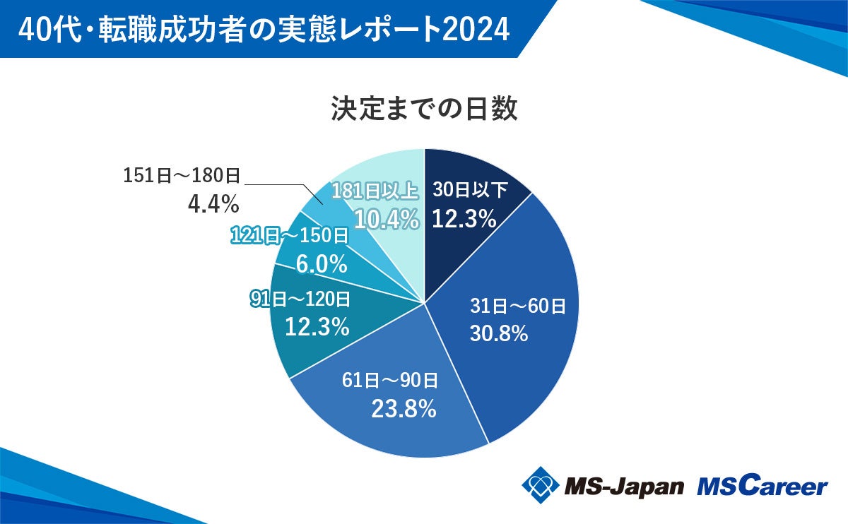 ④【40代が転職先決定までにかかった日数は「31日~60日」が最多で30.8%】