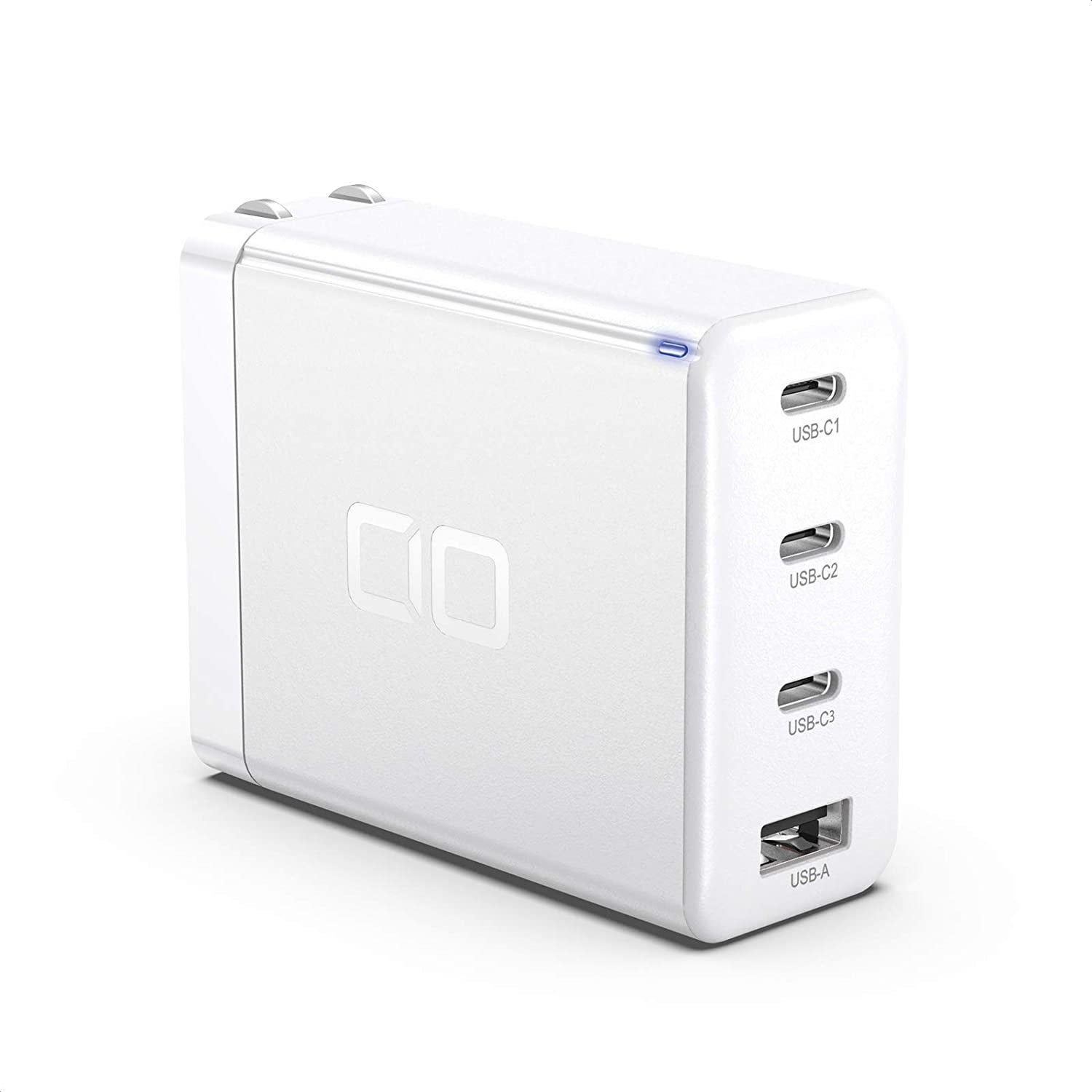 最大100W出力対応 GaN充電器。type-C x3ポート・type-A x1ポート 計4ポート搭載