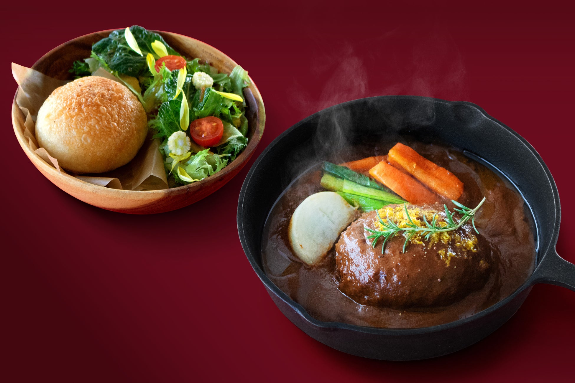 煮込みハンバーグ ~プラントデミグラスソース~(サラダ・ローズソルトバターパン付き)