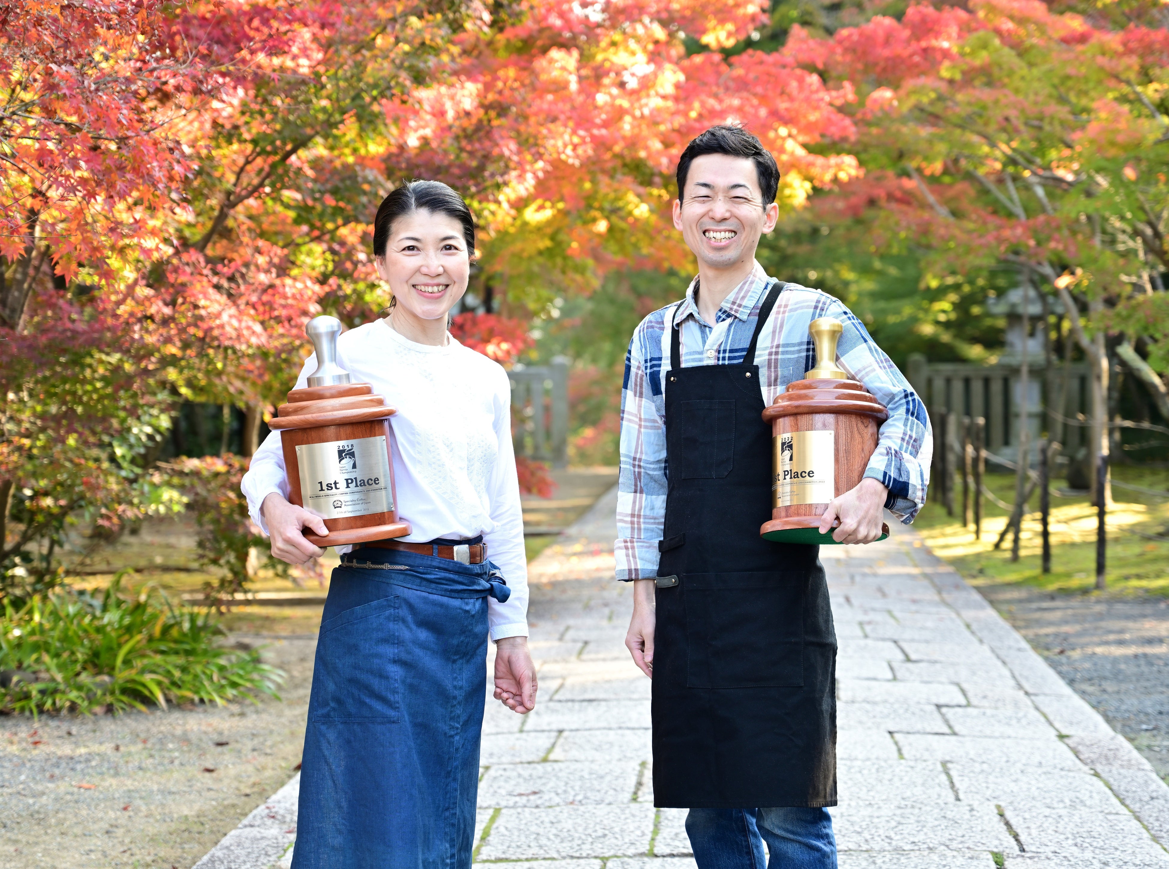 <ウニール> 左)ヘッドバリスタ 山本知子さん ・ジャパンバリスタチャンピオンシップ2018優勝 右)バリスタ 内部利夫さん ・ジャパンバリスタチャンピオンシップ2022優勝 |