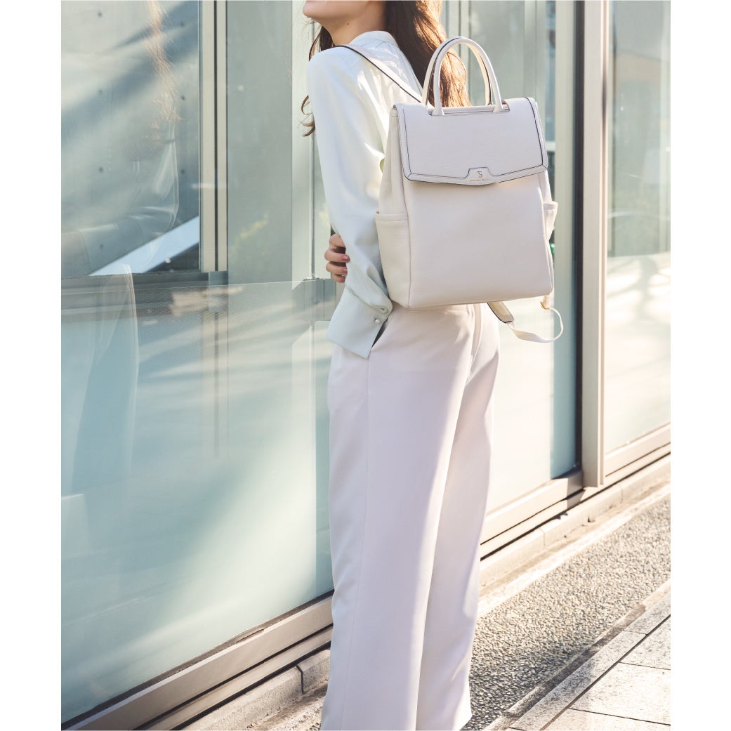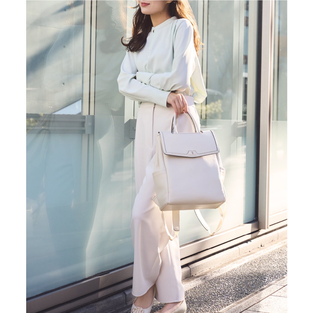 リュックスタイルで両手もあくバッグは、お仕事シーンにも大活躍。