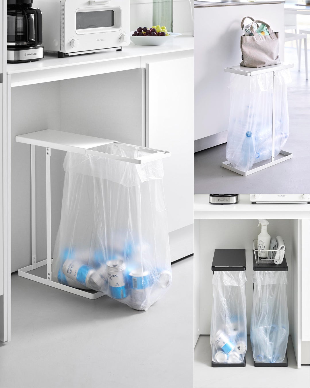 ホルダー内にレジ袋をセットすれば、省スペースでゴミの分別が可能に。