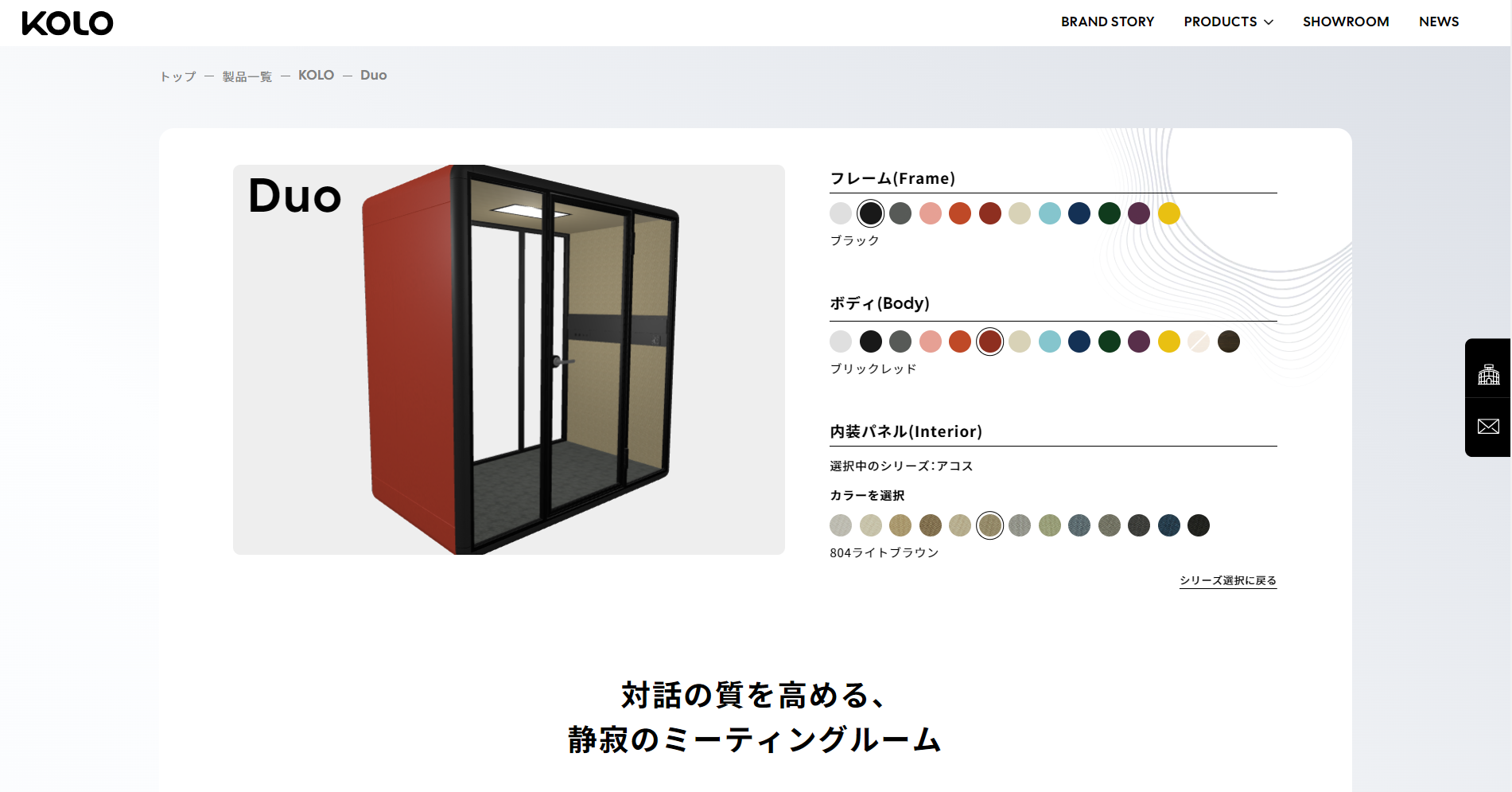 個室ブース「KOLO」公式HPにカラーシミュレーターを新搭載
