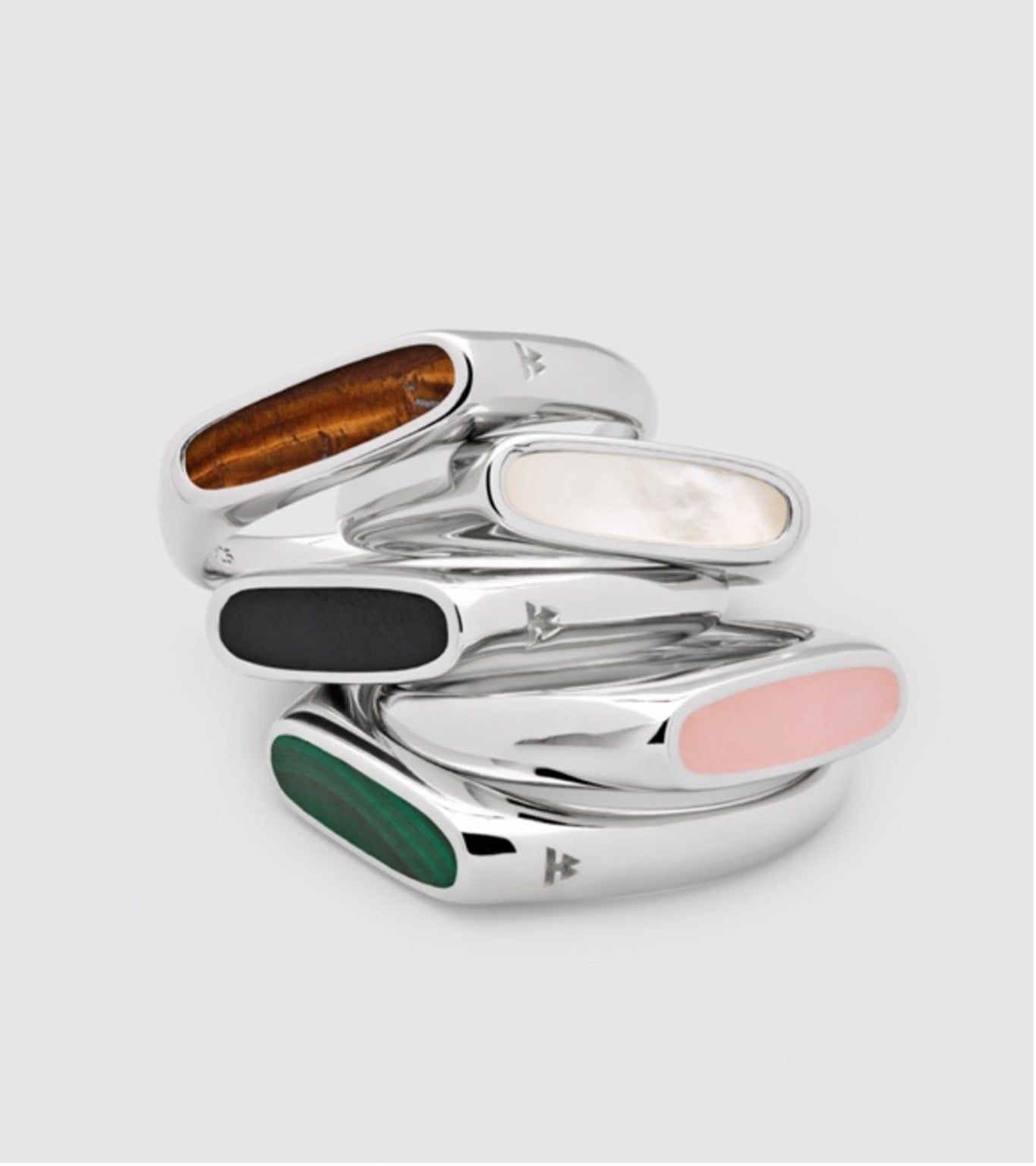ブランドのアイコンでもある、天然石を使用したユニセックスジュエリーを数多く展開。