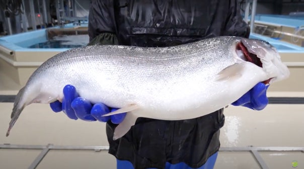 地下天然水を使って”閉鎖循環式陸上養殖システム(RAS)“で育成した「天然水サーモン」が2024年8月に新登場!