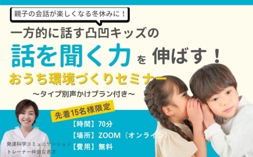 この度、『親子の会話が楽しく なる冬休みに!一方的に話す凸凹キッズの話を聞く力が伸びるおうち環境づくりセミナー』 の申し込みを開始しました。