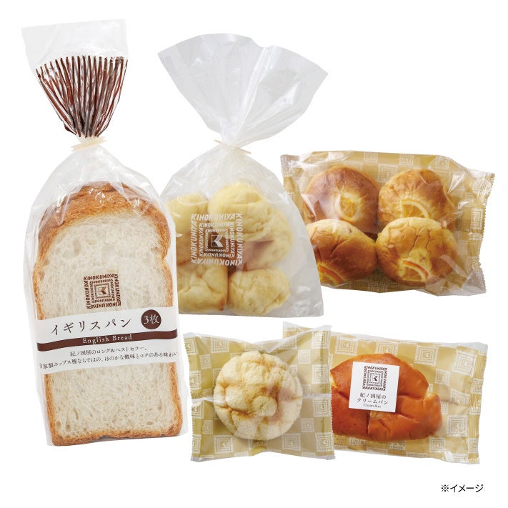 口どけのよいクリームがたっぷり入ったしっとりやわらかな生地の「クリームパン」、ロングセラーの「イギリスパン」、発酵バターを使用したふんわりと口どけの良い自慢の「メロンパン」など、5種類のパンの詰合せです。