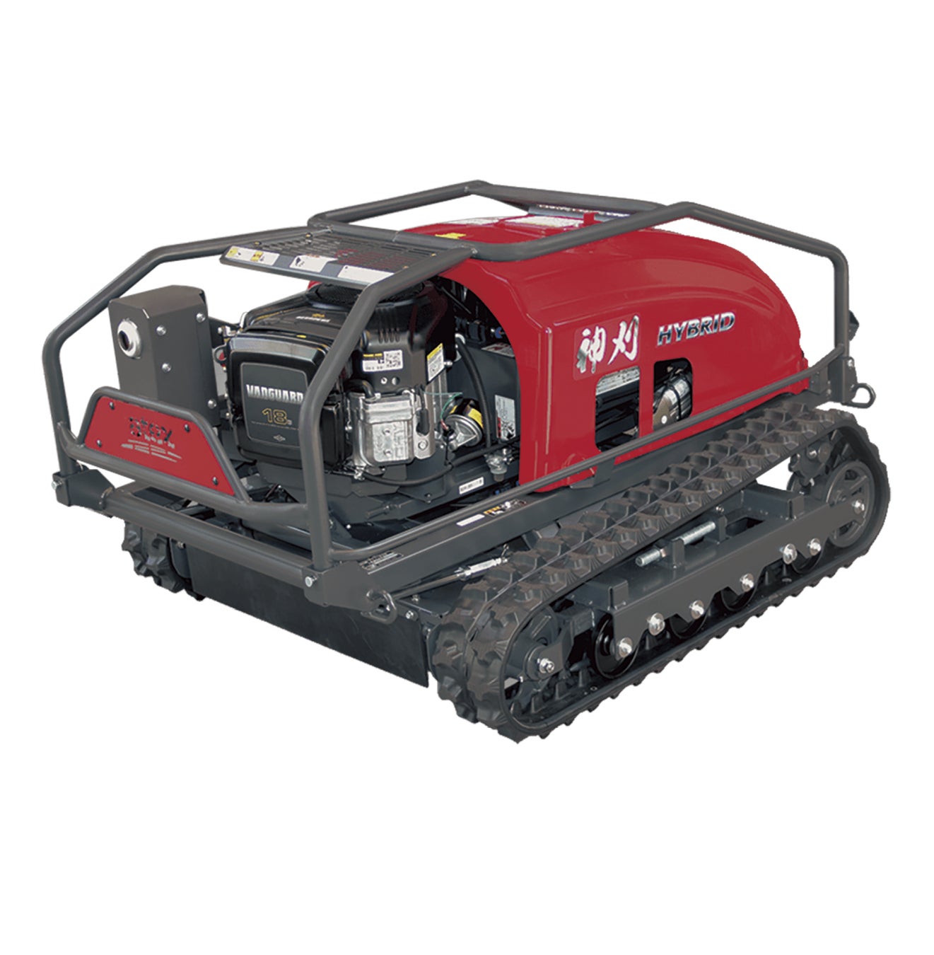 「神刈 RJ1016」は、従来機の「神刈RJ705」に比べ、刈幅を1,016mmに拡大し、従来機比で作業効率が2倍以上向上。より短時間で広範囲の草刈り作業が可能となり、業務の省力化に大きく貢献します。草刈りの機能はエンジン駆動、走行は電動でのハイブリッド仕様で、エンジン停止時でも最大約25分間の電動走行が可能なため、燃料を使い切っても自走で戻ってくることができます。