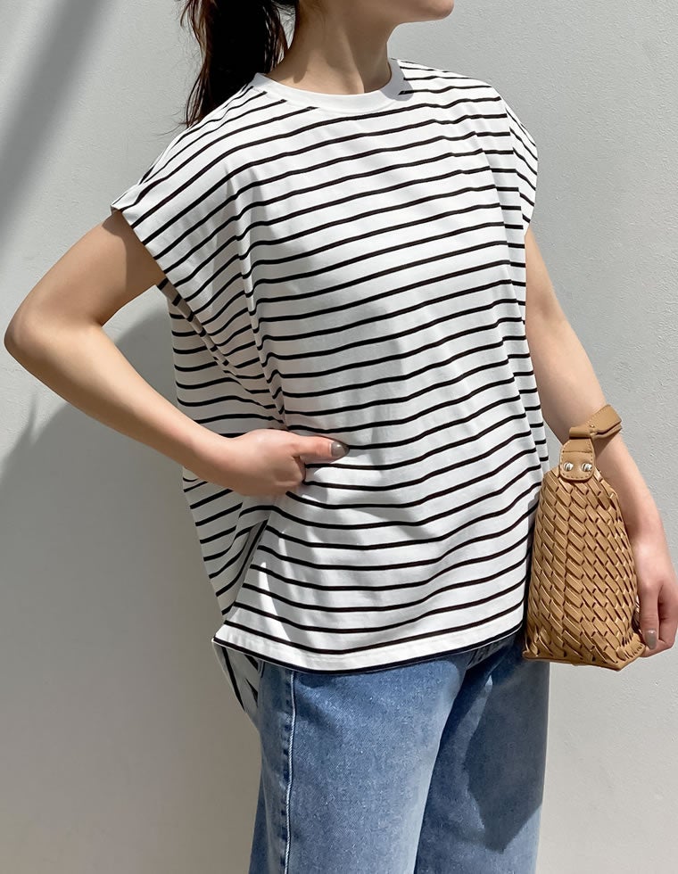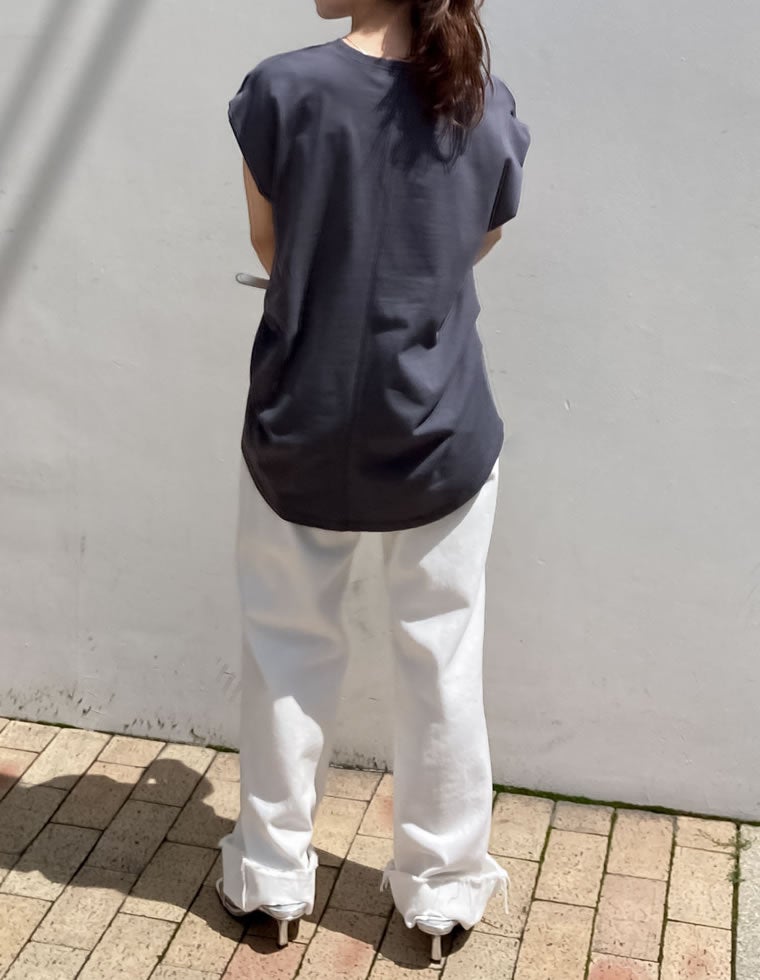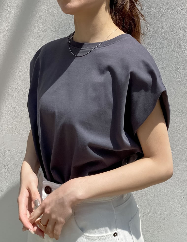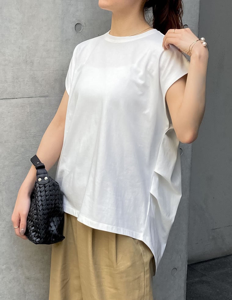 肩に少しかかる、フレンチスリーブのようなデザインで、カジュアルすぎずきれいめな印象に仕上がります。