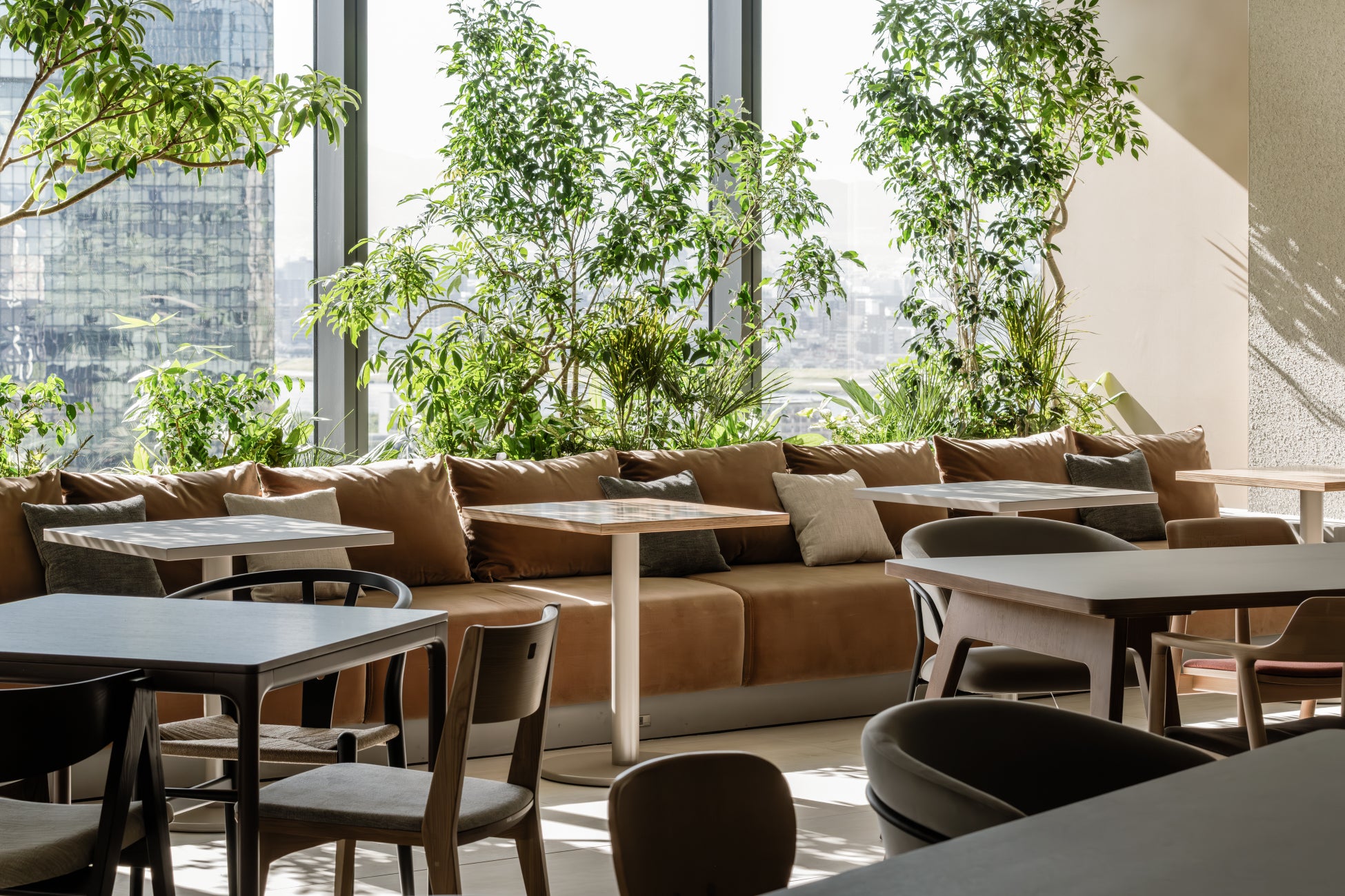 サステナブル素材やウェルビーイングを意識した自然光や植栽などもトレンドに。