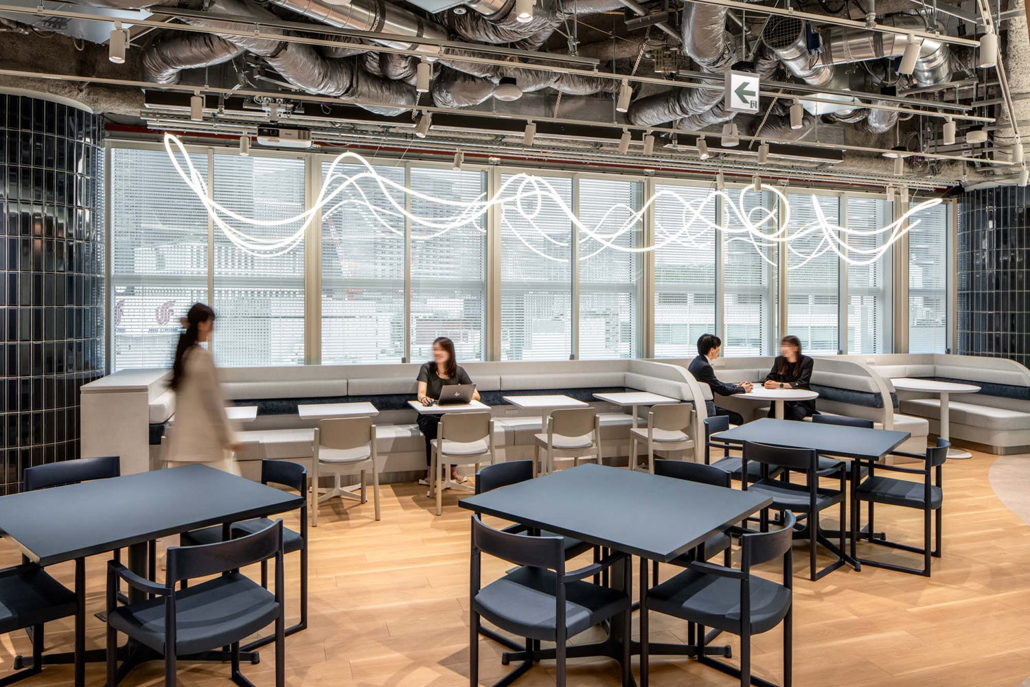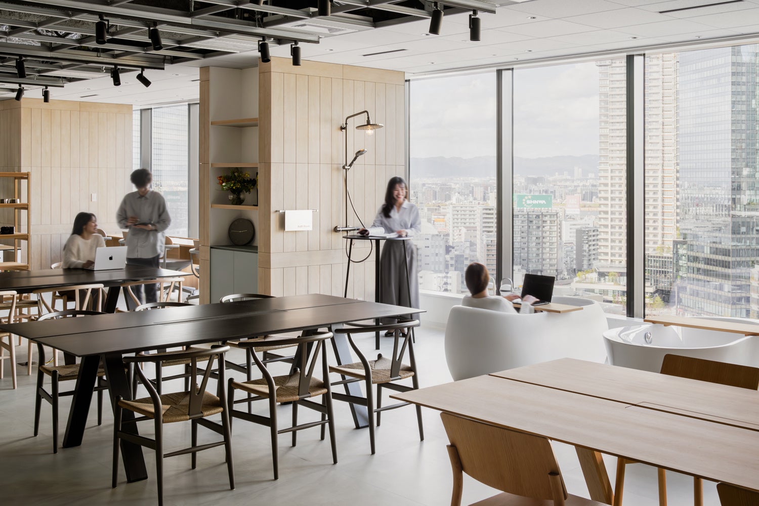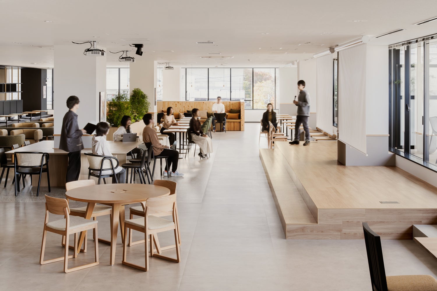 ワークプレイスに「居心地の良さ」をもたらすことを目指し、働く人が自ら考えて場を選び、集中や交流、学びが自然と行動の中から生まれる工夫とした。