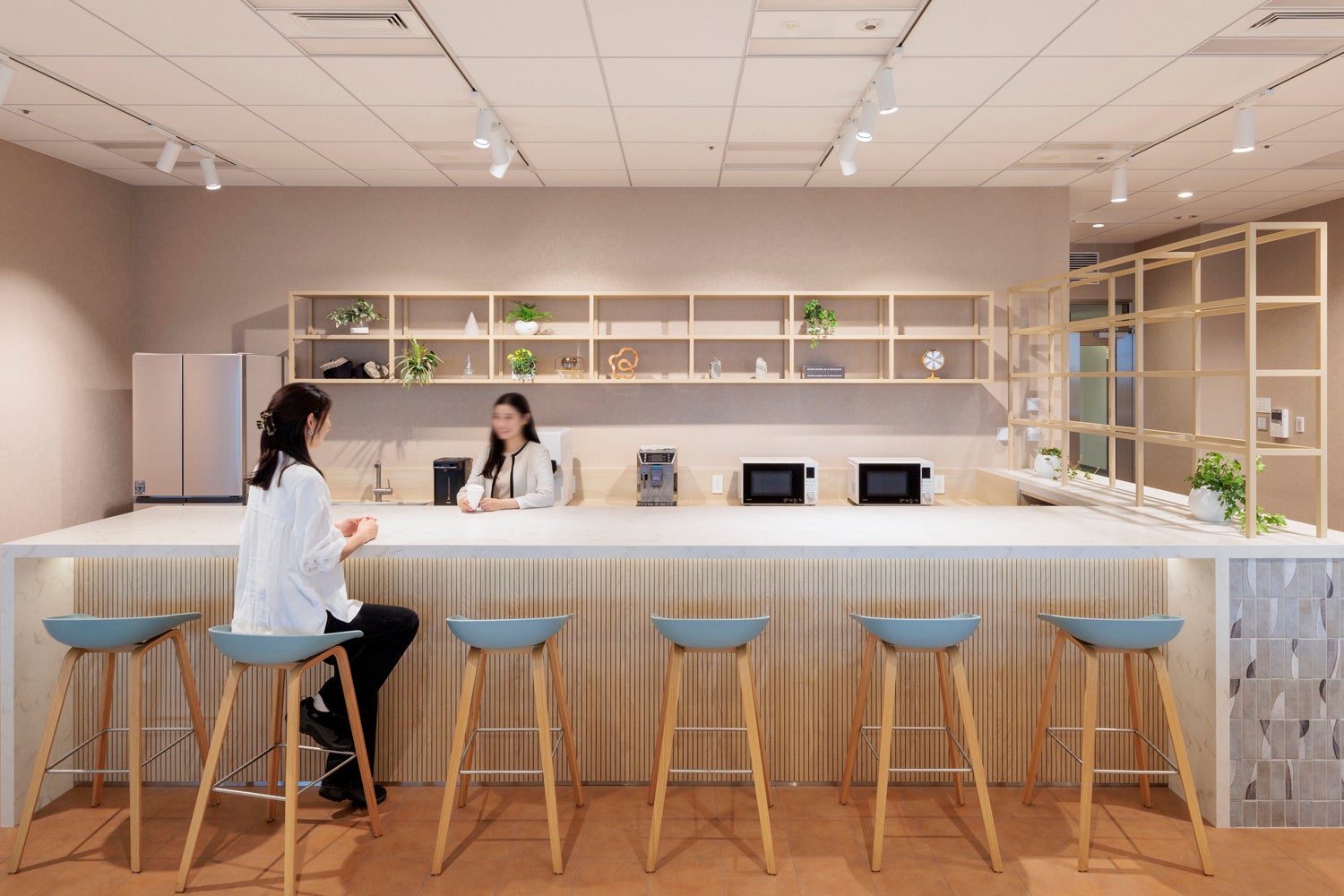 自宅より居心地が良く、ウェルビーイングを促進するオフィスを目指したプロジェクト。社員の方々が自分らしく、健康的に働ける環境になるワークプレイスを目指した。
