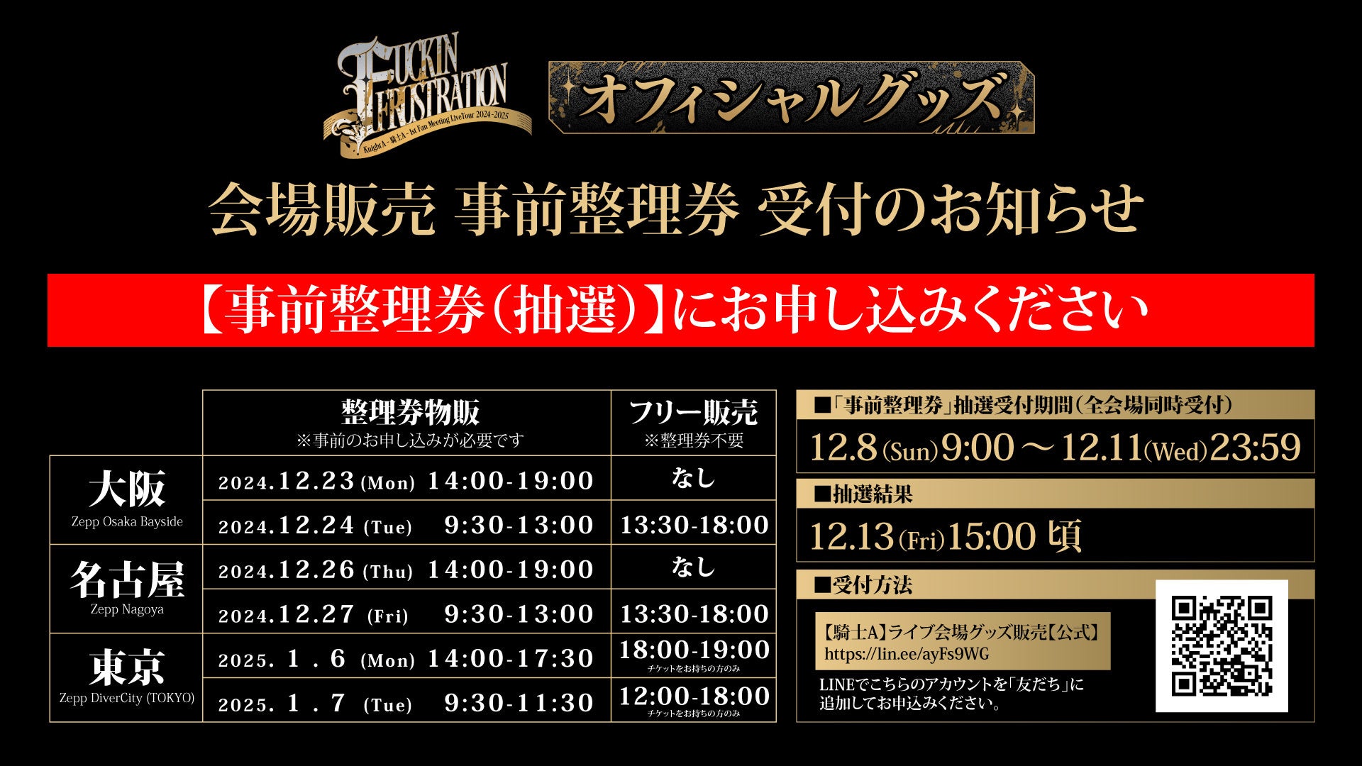 ※「Knight A - 騎士A -」公式LINEまたは各メンバーの公式LINEからはお申込みいただけませんので、ライブ会場グッズ販売専用LINEよりお申込みください。