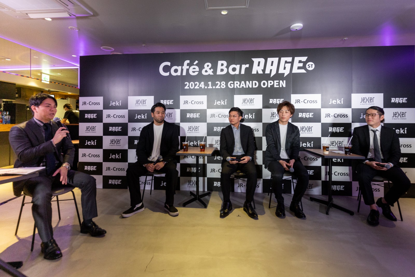 その後、株式会社JR東日本クロスステーション常務執行役員 フーズカンパニー外食事業部長 坂下 佳久さんとJR東日本スポーツ株式会社代表取締役社長 穴吹 昌弘さんより『Café&Bar RAGE ST』の施設説明が行われました。