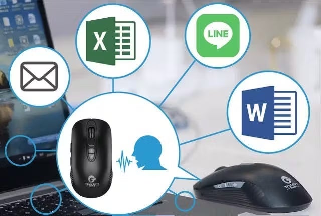 マウス本体に人の声を捉える収音マイクを内蔵しており、ボタンを押して話しかけるだけで、音声を認識し自動でタイピングしてくれます。