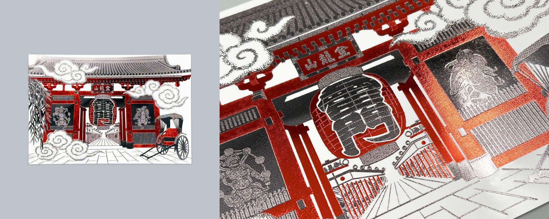 【新商品】箔押しブランド「ROKKAKU」より、全面箔押し加工の『日本名所シリーズ 雷門 箔押しポストカード 』が新登場!