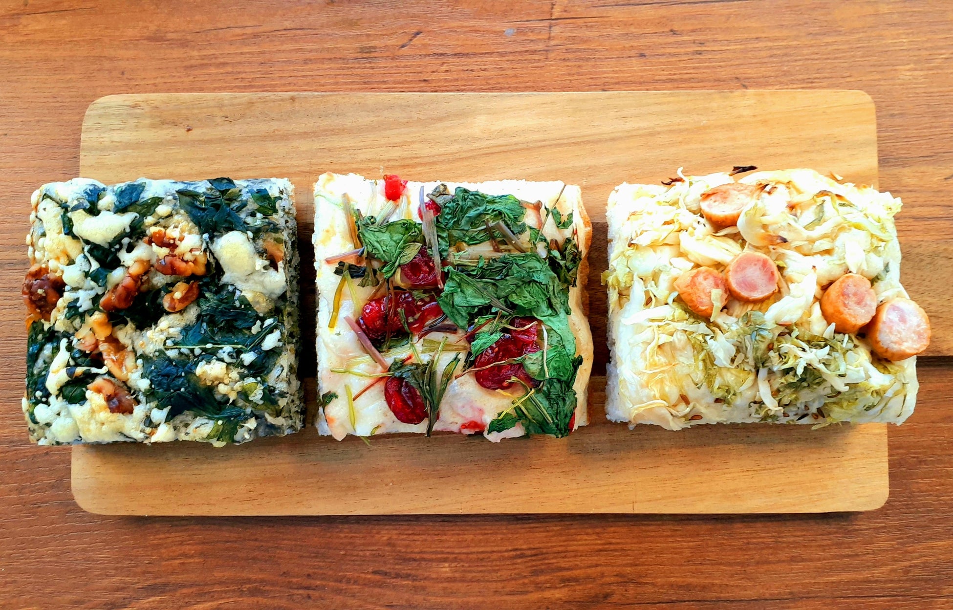 目を引くカラフルなスイスチャードと赤いクランベリーの甘さが引き立つフォカッチャです。