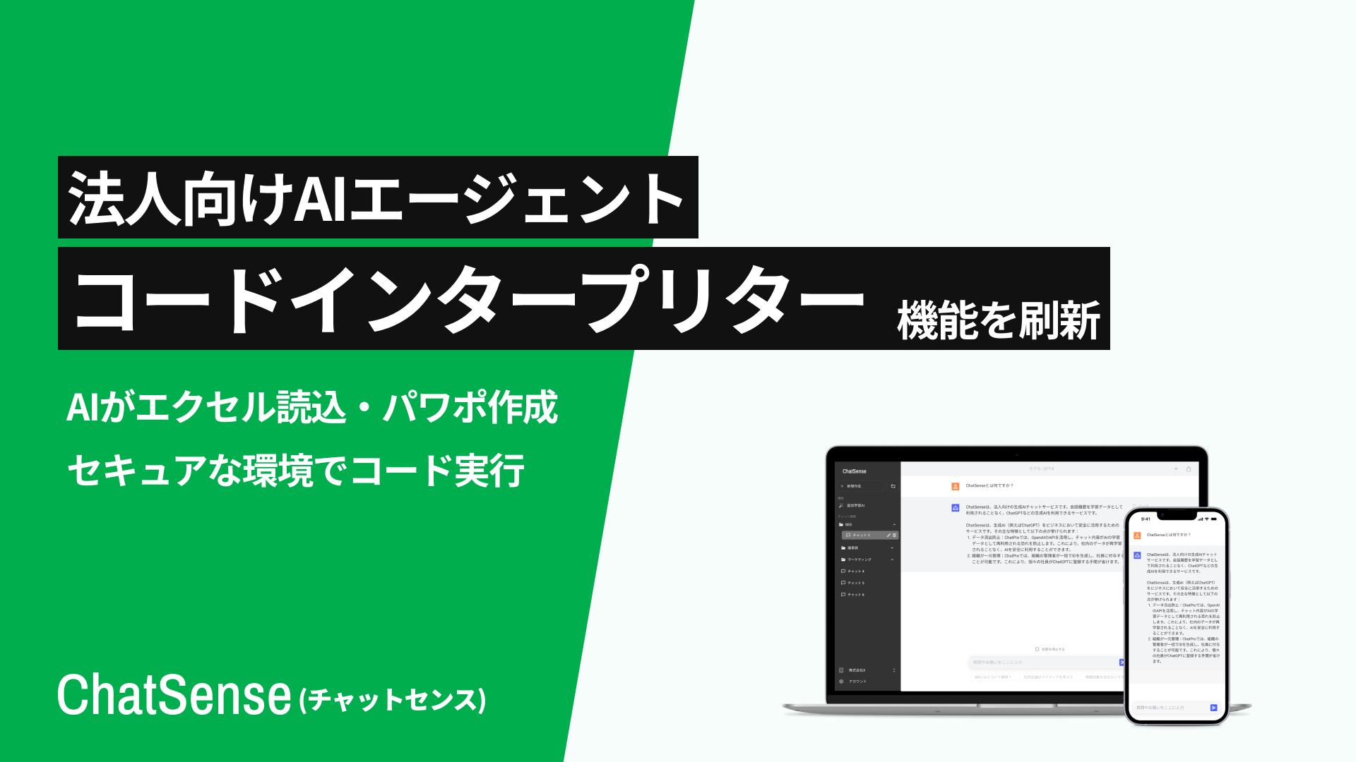 大企業の知的活動を最速にする株式会社ナレッジセンス(本社:東京都港区、代表取締役:門脇敦司、以下ナレッジセンス)は、チャットGTPを活用した企業向け生成AIエージェントサービス「ChatSense」について、「コードインタープリター」機能を大幅に刷新いたしました。