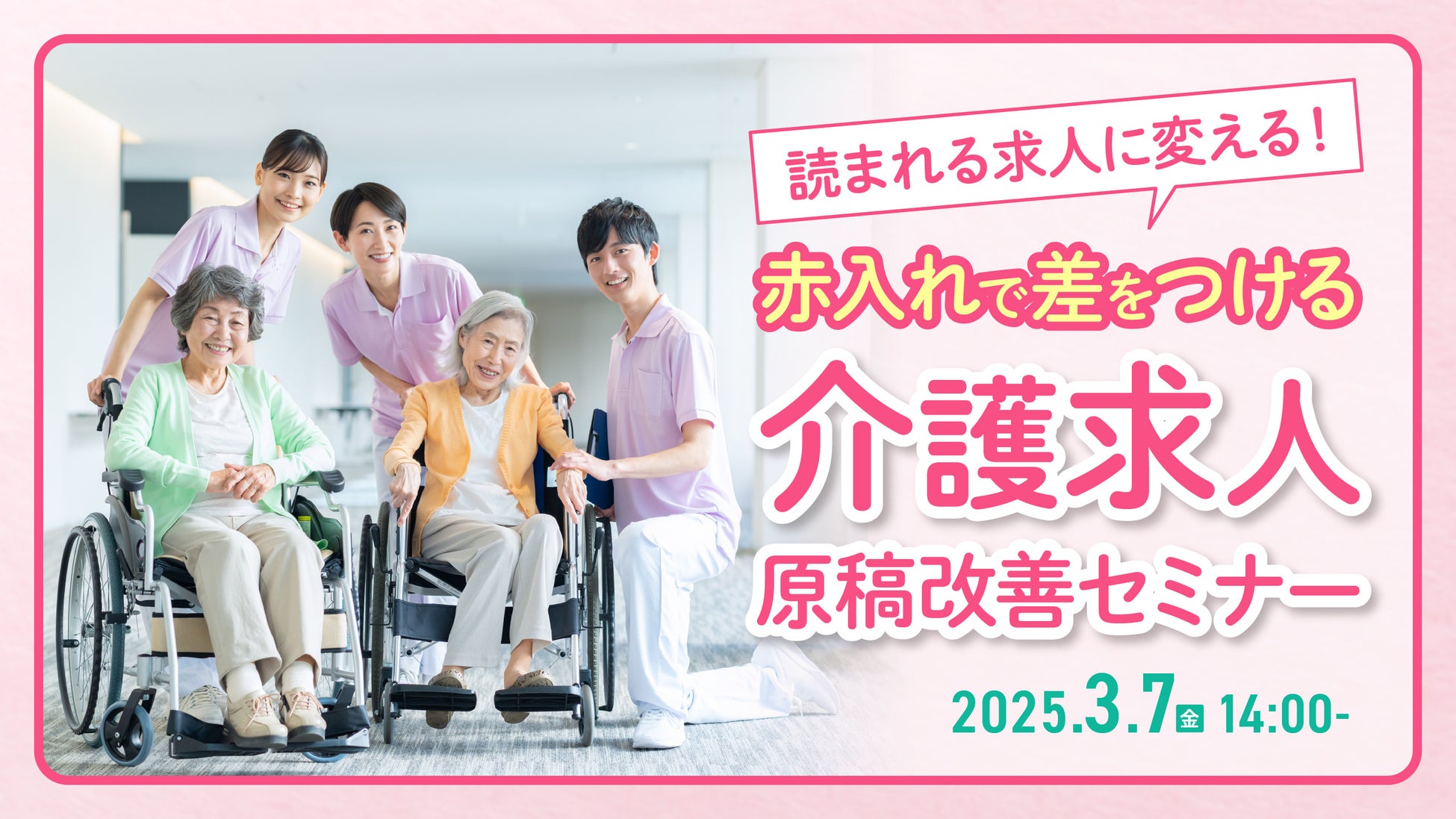 「働く」に関する社会課題をビジネスで解決するキャムコムグループの株式会社天職市場(本社:東京都新宿区、代表取締役:春名敬太 、以下:天職市場)は、2025年3月7日(金) 14:00よりオンラインセミナー『読まれる求人に変える!赤入れで差をつける介護求人原稿改善セミナー』を開催いたします。