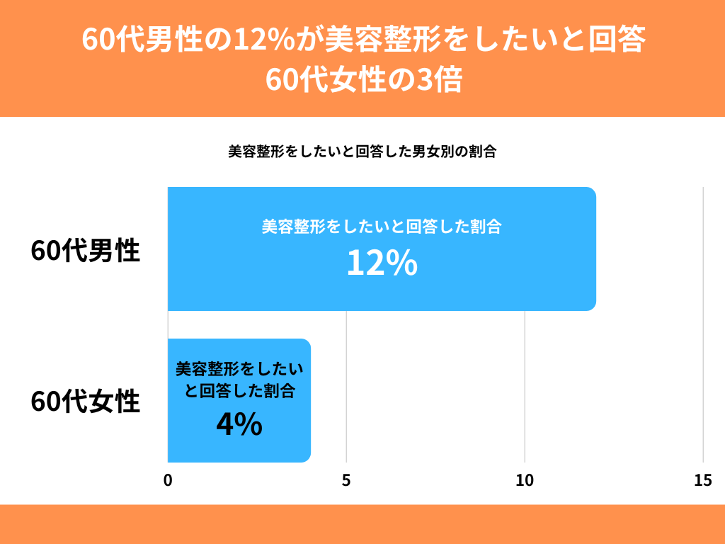 60代男性の12%が美容整形をしたいと回答。60代女性の3倍【美容整形に関するアンケート】