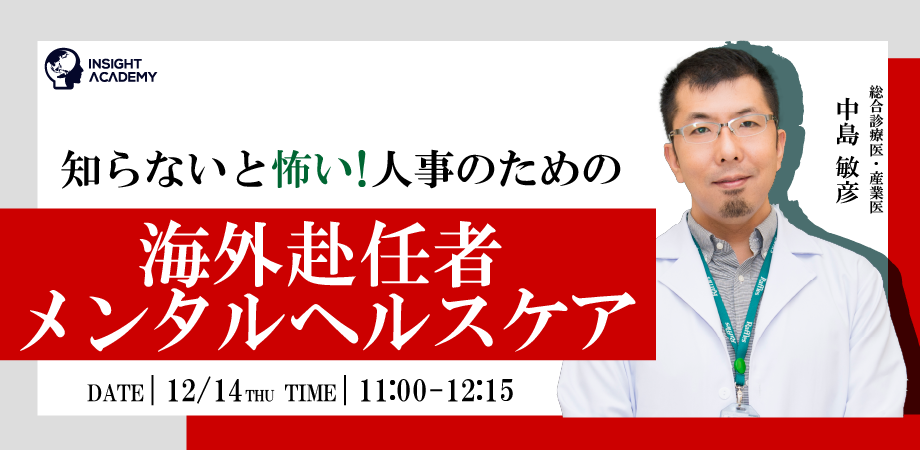 【12/14(木)知らないと怖い!人事のための】海外赴任者メンタルヘルスケア《人事部・海外事業部必見セミナー》
