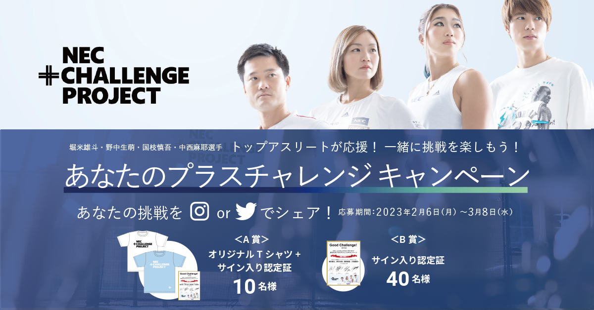 NEC、「トップアスリートが応援! 一緒に挑戦を楽しもう!あなたのプラスチャレンジ キャンペーン」を開始