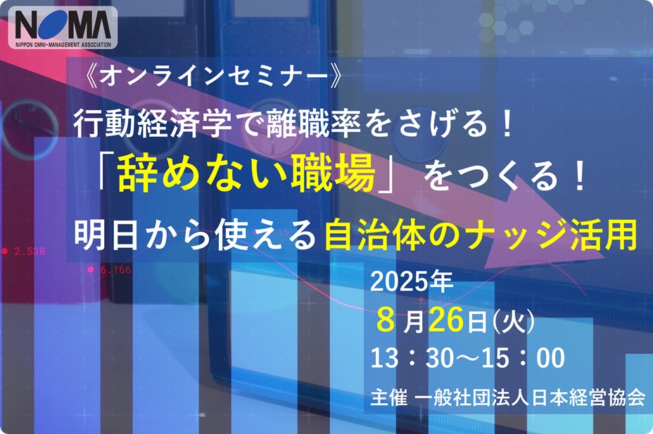 一般社団法人日本経営協会(本部事務局:東京都渋谷区 会長:高原 豪久)は、自治体の離職率をさげるための無料Webセミナーを、2025年8月26日(火)13:30~15:00で開催いたします。