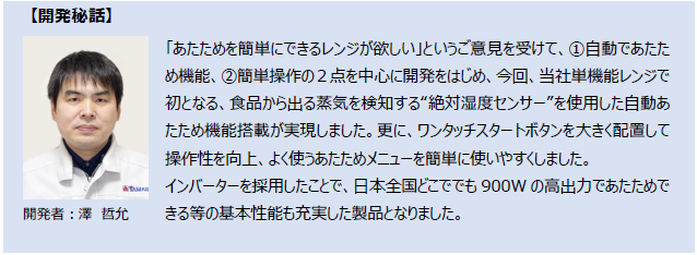 ワンタッチで簡単操作! “絶対湿度センサー”搭載 「インバーター式電子レンジ」 発売