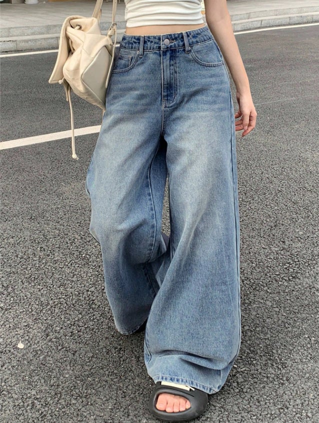 商品名:ゆるっとしたワイドレッグジーンズ ローライズジーンズ