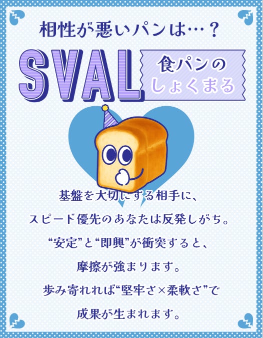 用語注記:MPTIは当社オリジナルのエンタメ診断名称であり、性格テスト一般の楽しみ方を、パンモチーフで親しみやすく再構成したものです。