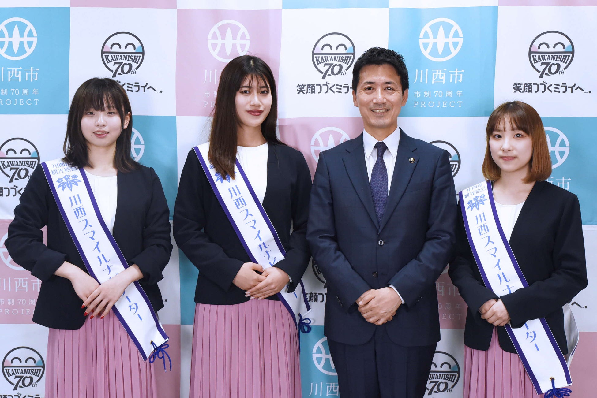 今回表敬訪問した3人と、八幡太郎義家公役に選ばれた岸本和之さん(きしもとかずゆき:20歳)の4人は「清和源氏まつり」後も「川西スマイルナビゲーター」として、年間を通じて市や観光協会などが行う各種イベントなどへ参加し、市の魅力のPRなどをする予定です。