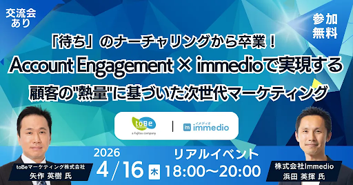 イベント名:「待ち」のナーチャリングから卒業!Account Engagement × immedioで実現する、顧客の”熱量”に基づいた次世代マーケティング