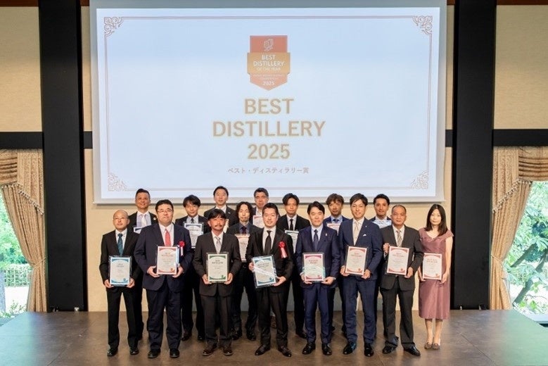 TWSC2025では、2025年8月3日(日)に東京都港区の明治記念館で授賞式を開催しました。洋酒部門、焼酎・泡盛部門で最高金賞や特別賞を受賞した58社と審査員・一般参加者が出席し71の賞を表彰しました。特別賞のひとつの、1年間で活躍した蒸留所が選ばれる「ベストディスティラリー賞」は授賞式で初公開、公式発表を行いました。
