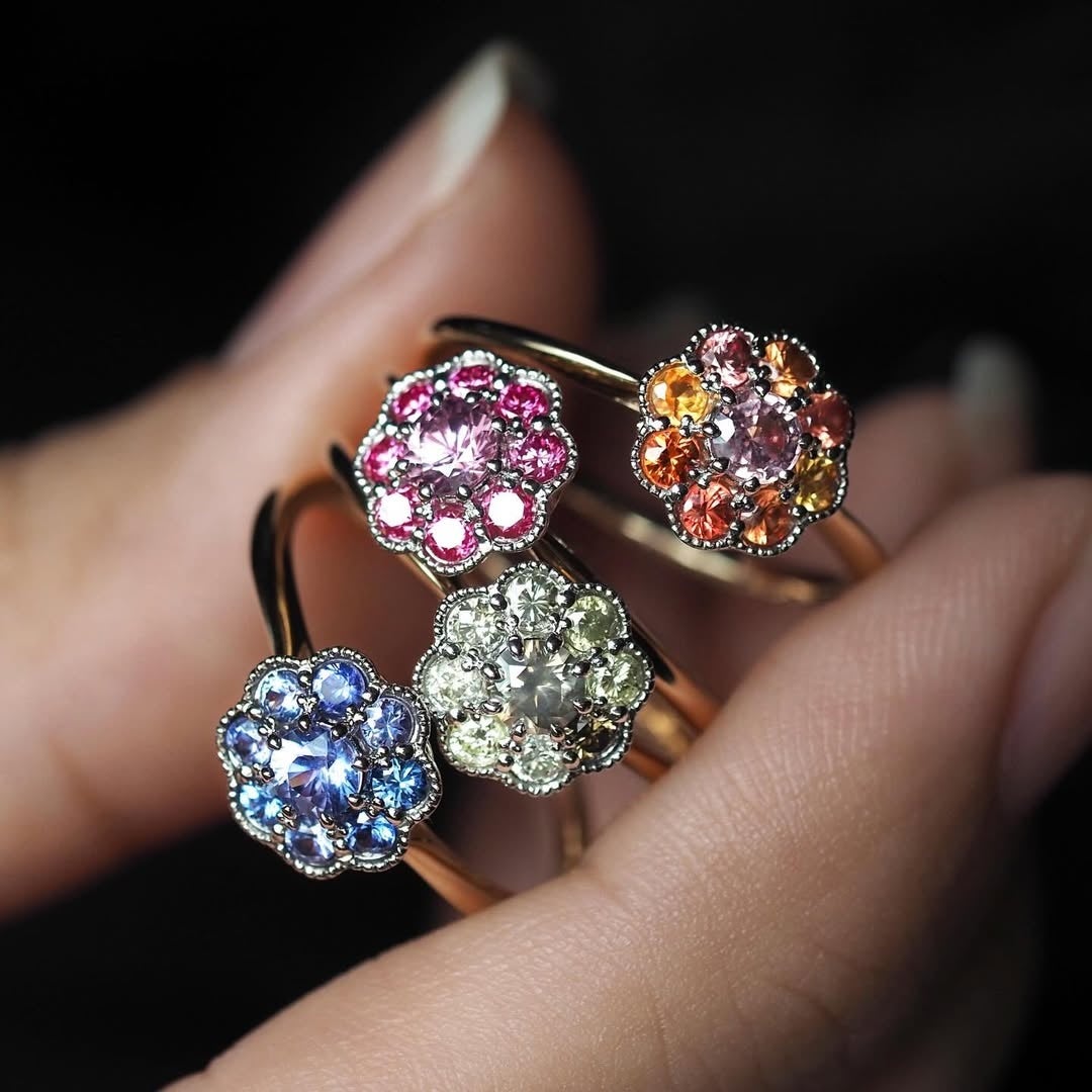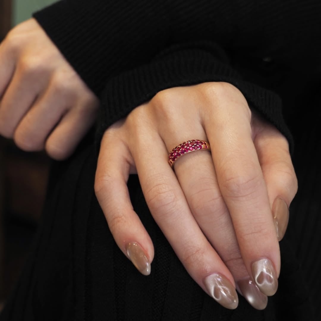 ルビーとサファイアは、それぞれの照りと発色をまっすぐに引き立てるため単色で構成。深みのある赤はより濃く、澄んだ青はより静かな輝きを帯び、色そのものの魅力が際立ちます。