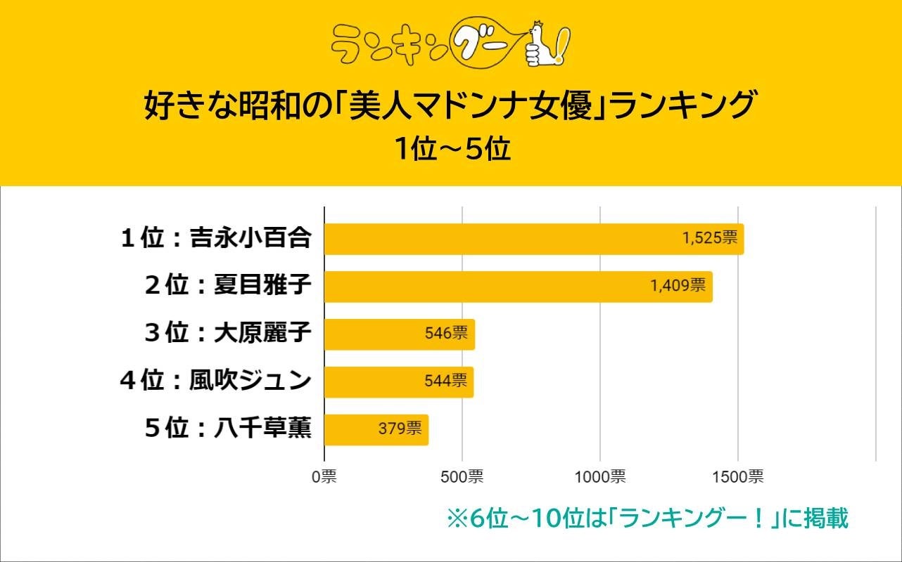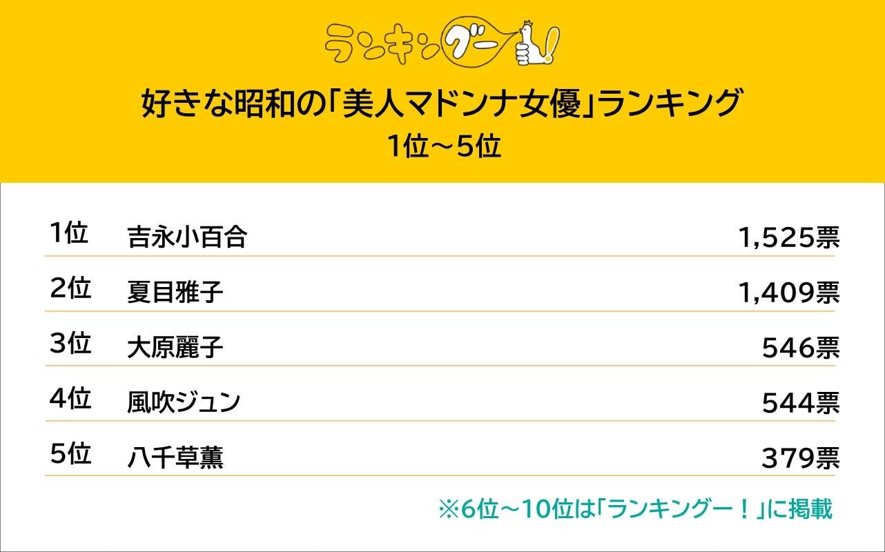 ◆好きな昭和の「美人マドンナ女優」ランキングTOP5抜粋
