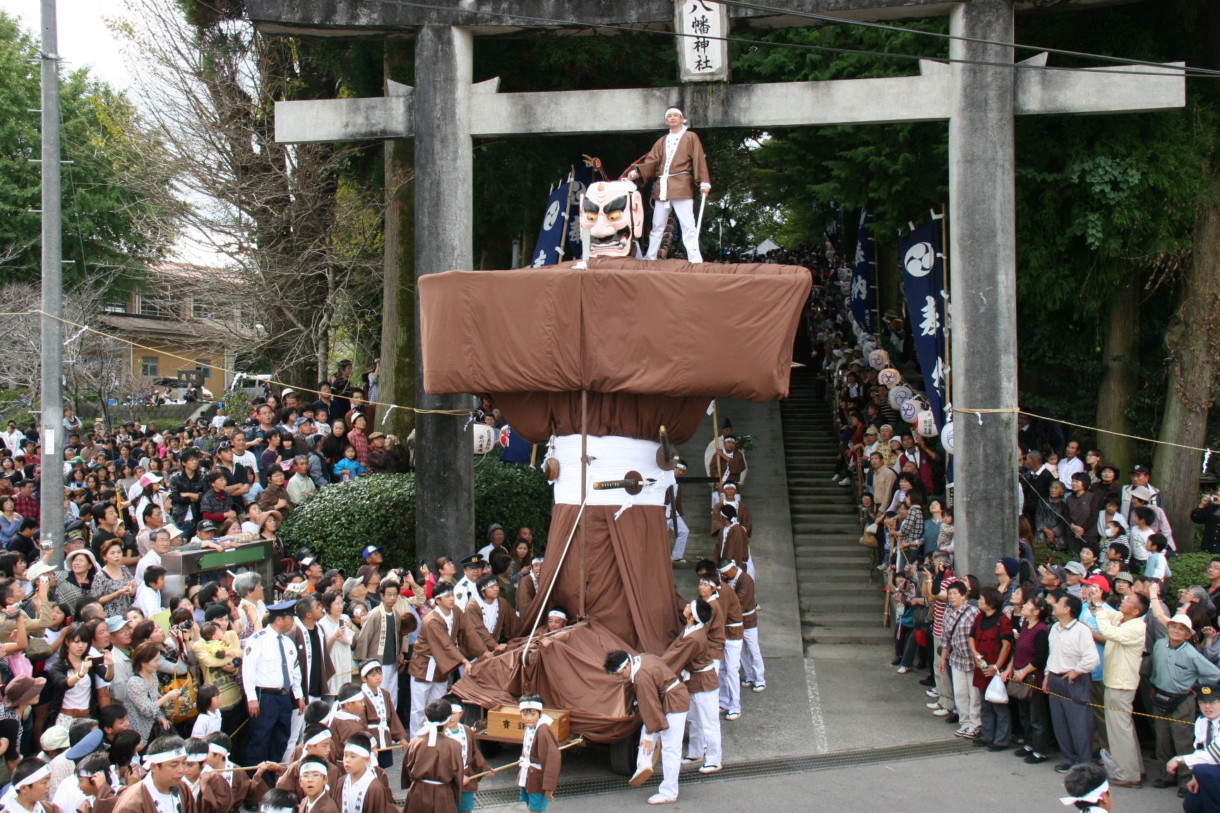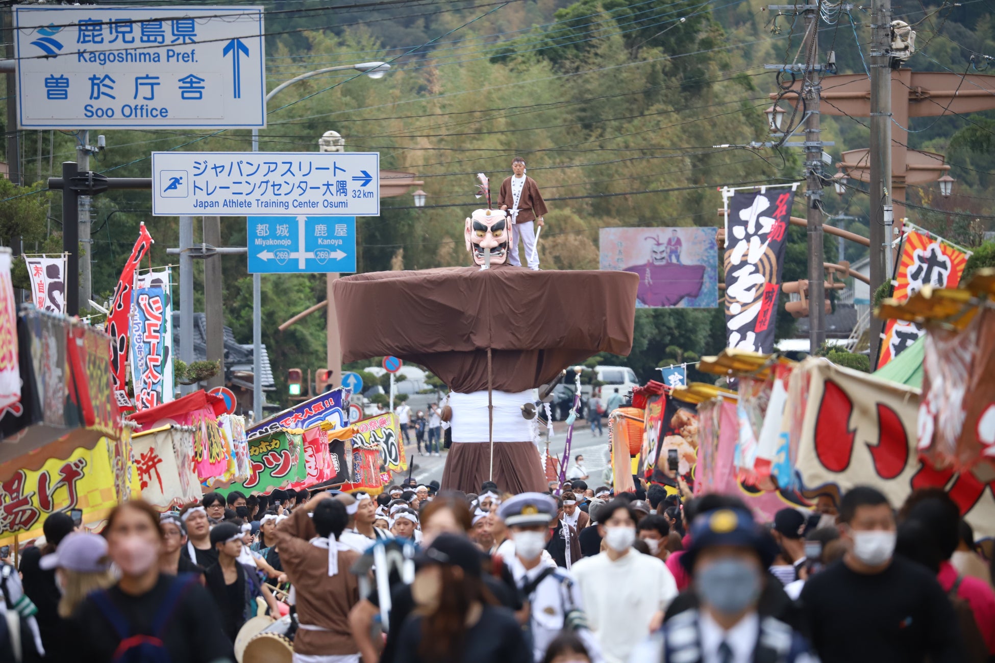 毎年11月3日、1000年の伝統を持つ「弥五郎どん祭り」が開催されます。「弥五郎どん」とは身の丈4メートル85センチの伝説の巨人で、一説には隼人族の首領、または300歳の長寿を誇り六代の天皇に仕えた武内宿祢などとも言われています。鹿児島県の「県下三大祭り」の一つであり、弥五郎どんが岩川八幡神社から岩川の市街地を練り歩く「浜下り」には県内外から多くの人が訪れます。1988年には鹿児島県無形民俗文化財に指定されました。
