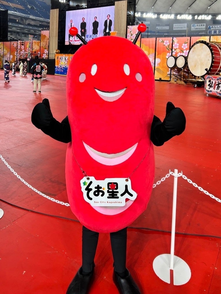 そお星からやってきた『そお星人』は曽於市の美しさと食べ物に感動して、2015年7月から曽於市に住みついています。