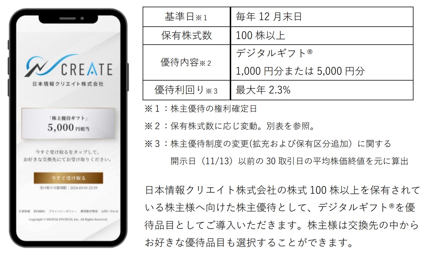 日本情報クリエイトが株主優待としてデジタルギフト®を採用