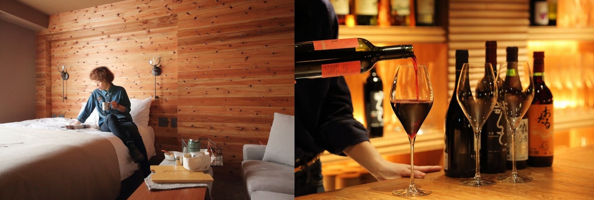 森を満喫した後は、「UNWIND HOTEL&BAR 札幌」の薪ストーブが設置されたロッジライクな空間で森のサウナの余韻に浸り、ホテル最上階にあるBAR IGNISでこだわりの北海道産ワインやジンをお楽しみください。翌朝は木の温もりを感じる客室で、バスケット形式で運ばれる朝食と共にゆったりした時間をお過ごしいただけます。