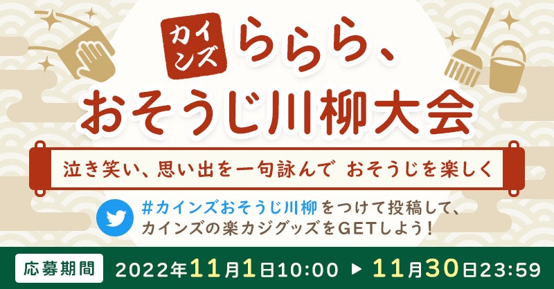 カインズは、本格的な大掃除シーズンの到来前に、Twitter上で掃除にまつわる思い出を川柳で募集します。本キャンペーンを通して、クスっと笑える・少し切なくなる・少しびっくりするような、日々のくらしの思い出をみんなで共有し、くらしのワンシーンとして、おそうじに楽しく取り組める文化の醸成に寄与できればと考えています。