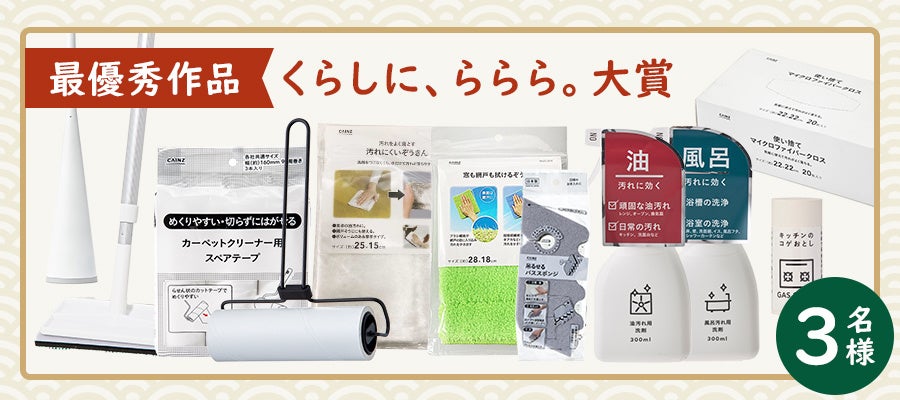さらに、投稿いただいた川柳の中から合計23作品を選出し、入選された方にはおそうじを「ラク」に「楽しく」するカインズの楽カジグッズをプレゼントします。