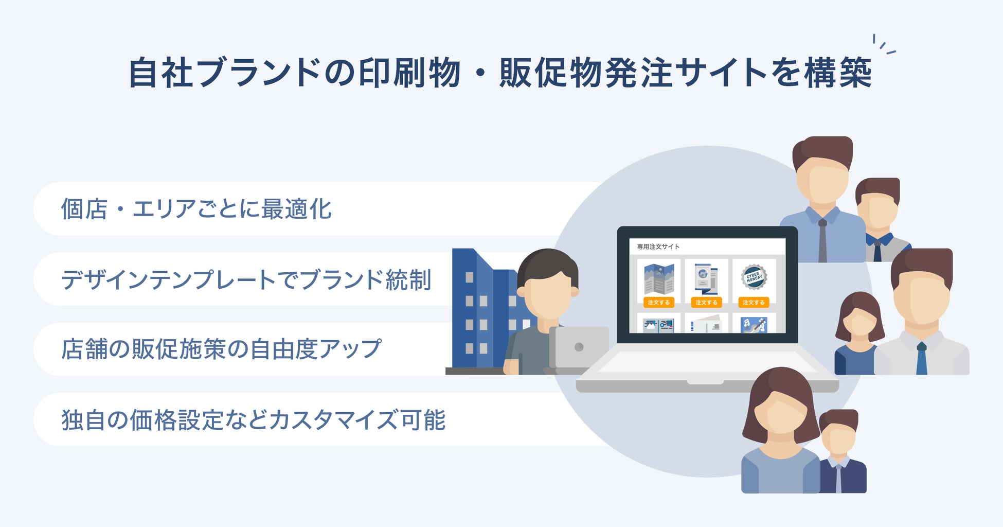また、大きなブランドを保持しており、数百店舗以上を抱える一部の企業においては、各店舗・各営業所が販促活動に必要な印刷物・販促物を発注できる自社サイトを構築していることもわかりました。