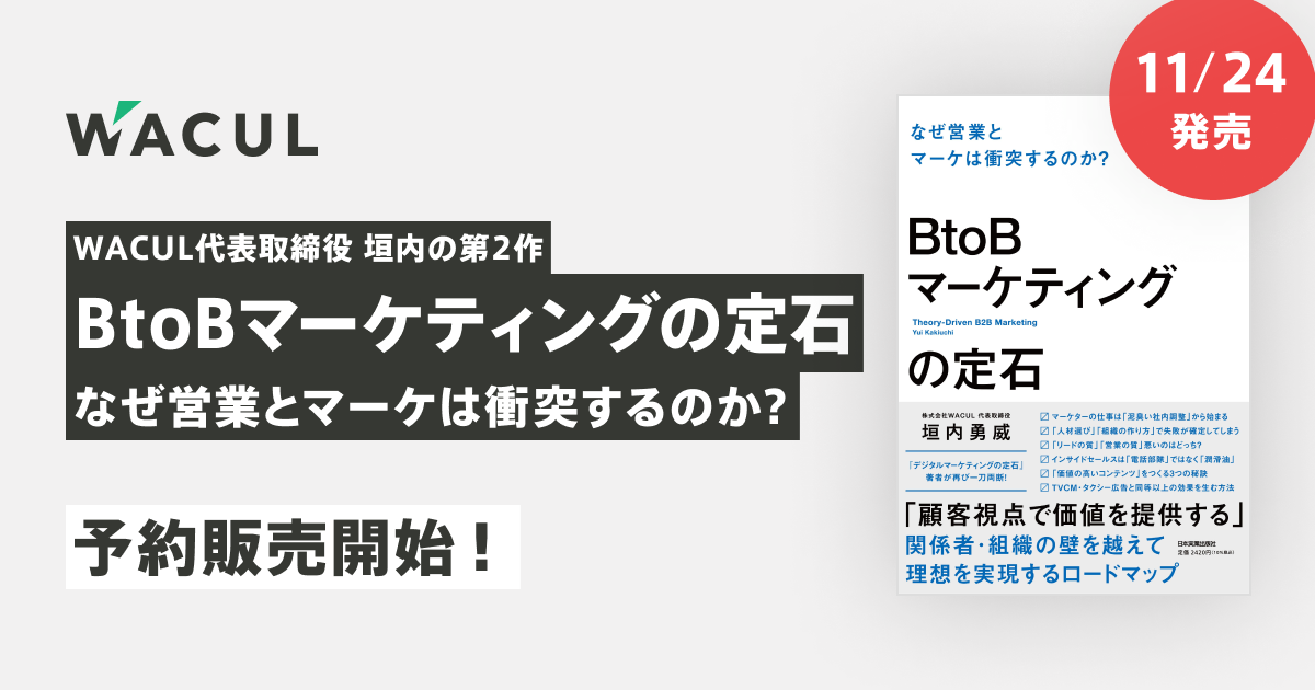 【11月24日発売】WACUL代表取締役垣内の第2作『BtoBマーケティングの定石~なぜ営業とマーケは衝突するのか?』予約販売開始!